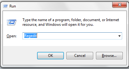 آنگاه پنجره Runباز میشود داخل کادر آن عبارت "Regedit" مطابق تصویر زیر تایپ کرده و کلید Ok را کلیک می کنیم.